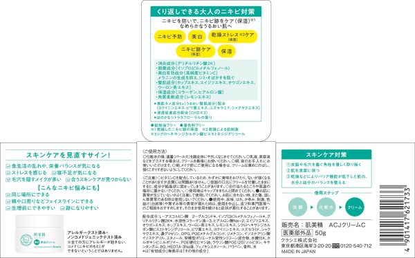 This medicinal cream prevents acne by sterilizing, inhibiting, and deactivating acne-causing bacteria. It also helps prevent dark acne marks and bumpy acne scars through moisturizing and skin care. Additionally, it contains active whitening ingredients for whitening care, leading to smooth and healthy white skin.