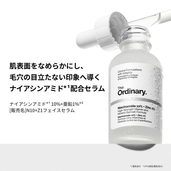 – **N10+Z1 Face Serum:** Water, Niacinamide, Pentylene Glycol, Zinc PCA, Dimethyl Isosorbide, Ethoxydiglycol, Isoceteth-20, Xanthan Gum, Tamarind Gum, Phenoxyethanol, Chlorphenesin