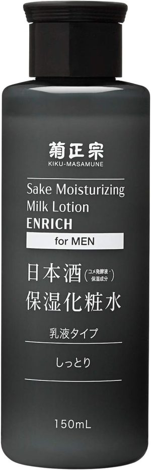 This lotion contains sake (rice fermentation liquid, a moisturizing ingredient) to provide moisture and improve the skin’s condition. It is further enhanced with moisturizing amino acids (glutamic acid, arginine, leucine) and ceramides. The viscous liquid is easily absorbed into areas of concern for dryness, leading to smooth and moist skin without irritation. For enhanced effects, soak an ample amount in cotton or tissue paper and use as a face pack for about five minutes. It can be generously applied to the face and body after a shower or bath. Cooling it in the refrigerator before use can tighten the skin. Comes in a convenient pump bottle. It is weakly acidic, colorant-free, and mineral oil-free.