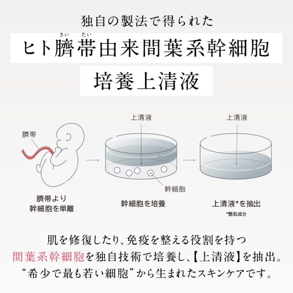 Approaches comprehensively with human umbilical cord-derived mesenchymal stem cell culture supernatant. Provides complex care to address various areas of concern, delivering luxurious, professional skincare akin to post-salon skin. Creates a complexion that is one step ahead.