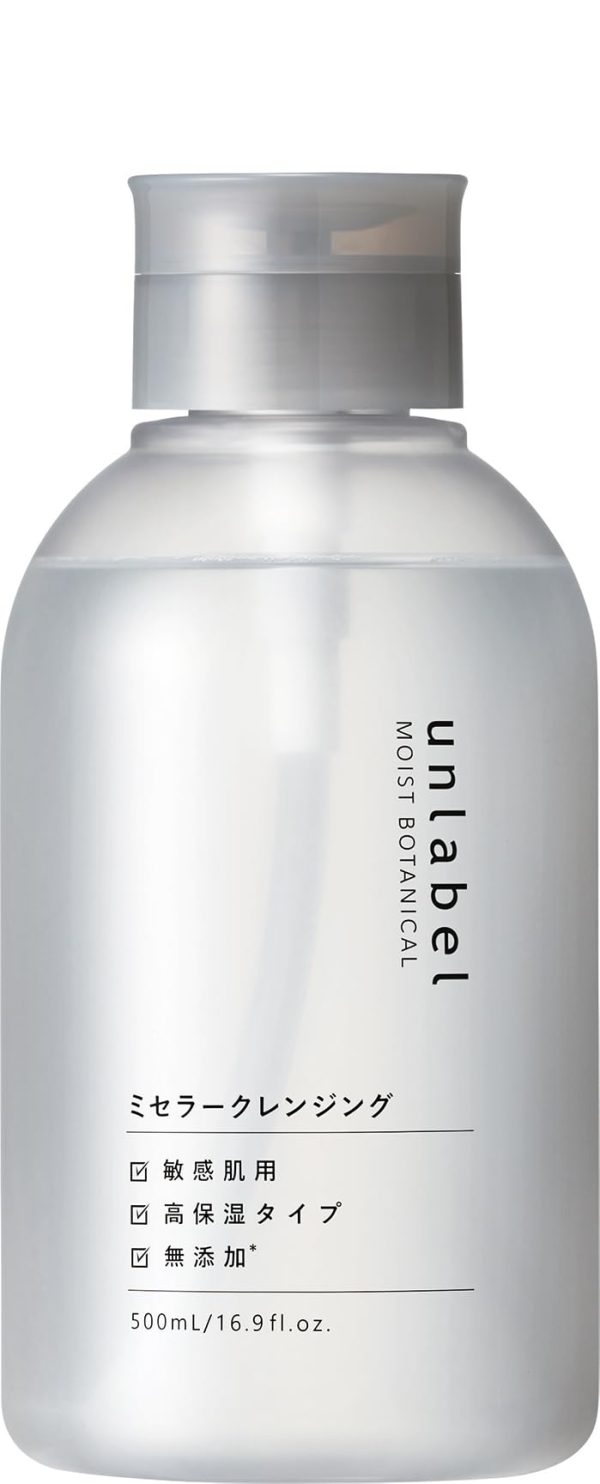 Unlabel Micellar Cleansing Water, Moist, Botanical, Sensitive Skin, Additive-Free, Organic, Makeup Remover, No Double Face Wash Required, 500ml, Made in Japan, Skin Care