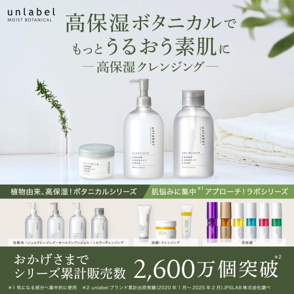 *1 Comparison with the company’s previous product, Unlabel Moist Botanical Micellar Cleansing Water.