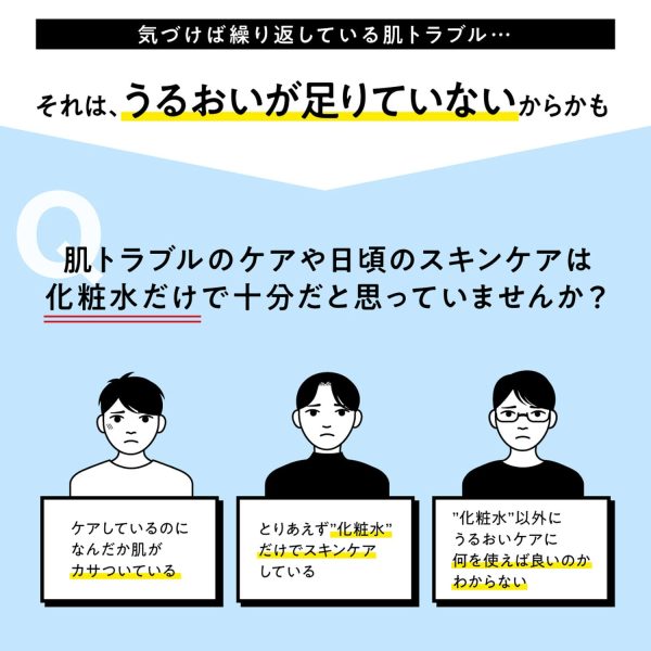 ● After washing the face, this product alone addresses the five major skin concerns that become noticeable with age for men: preventing spots, rough skin, dryness, shine, and making fine dry wrinkles less noticeable.